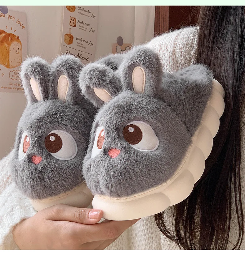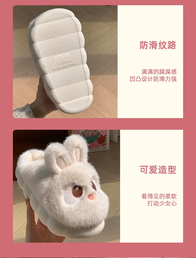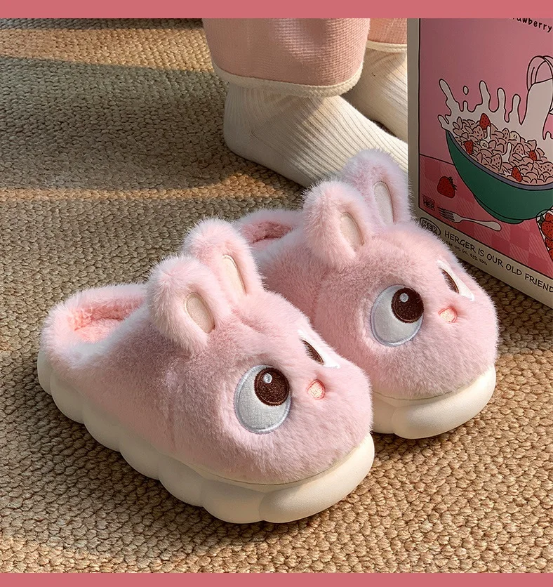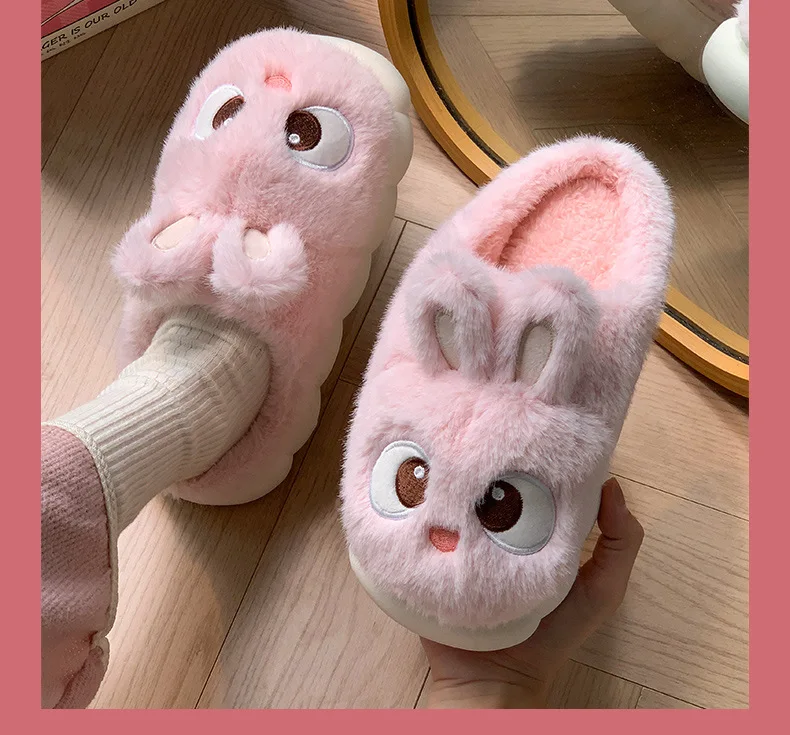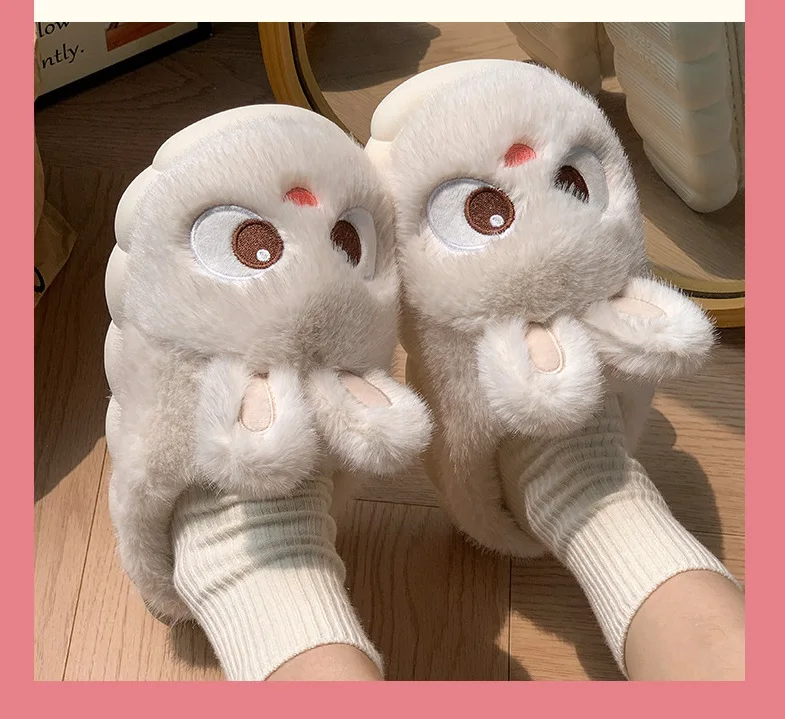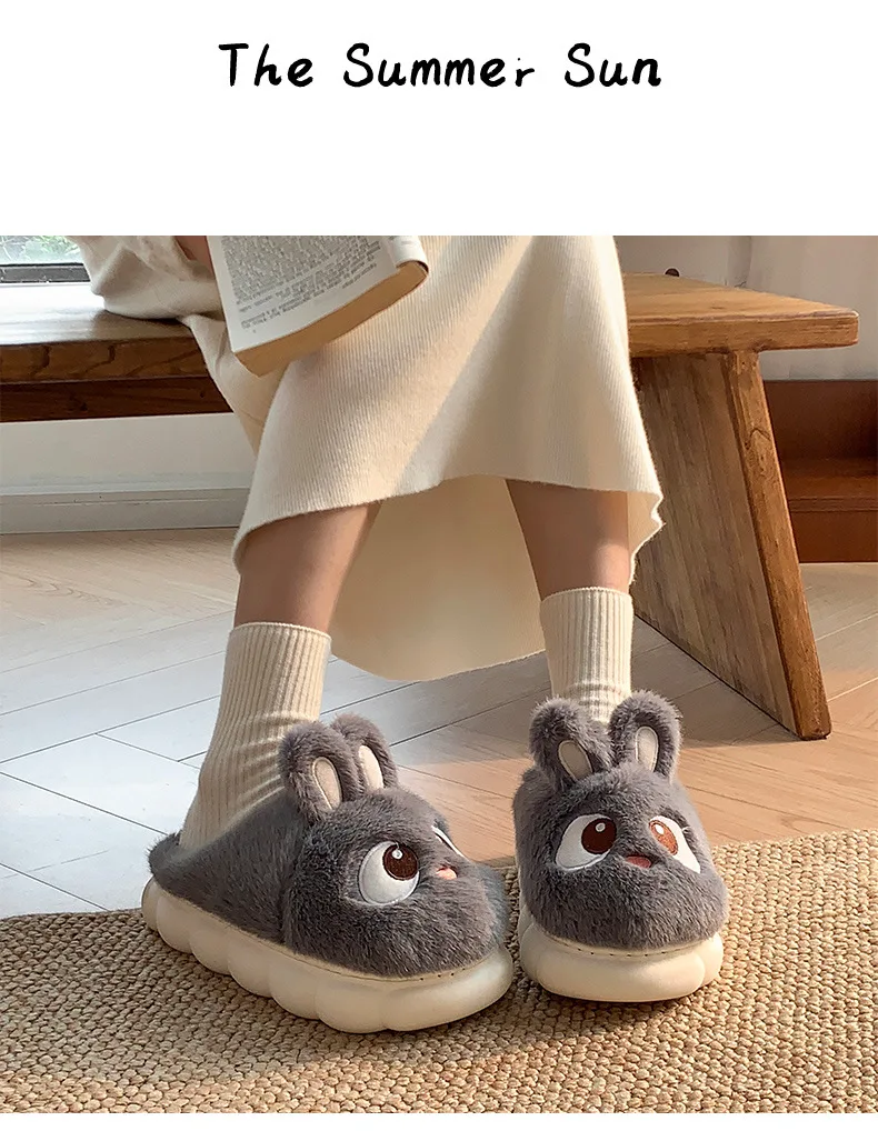 Rabbit Ear Furry Slides Winter Home Shoes