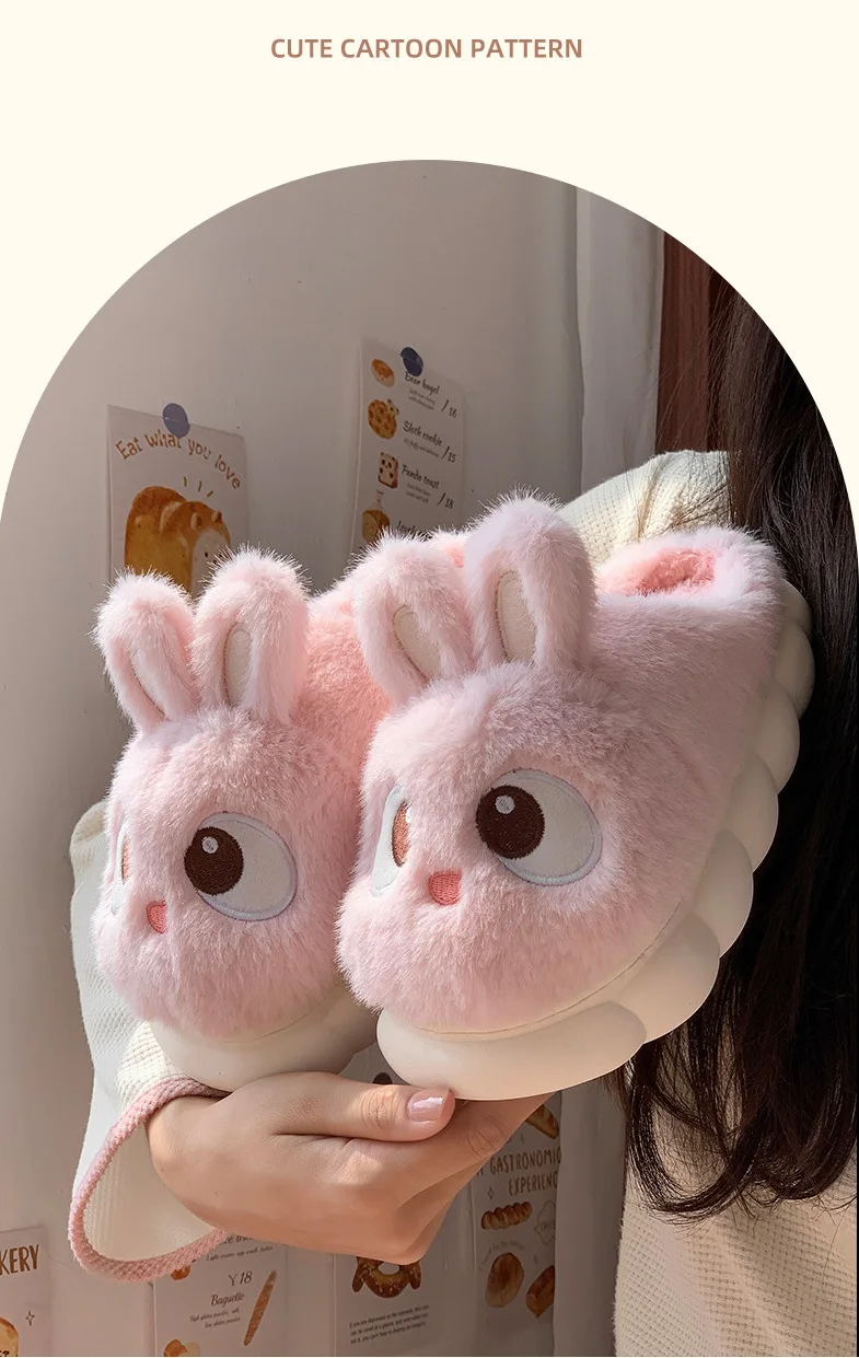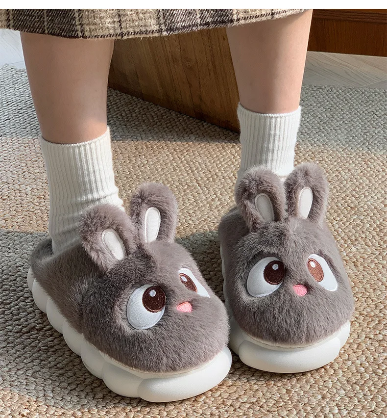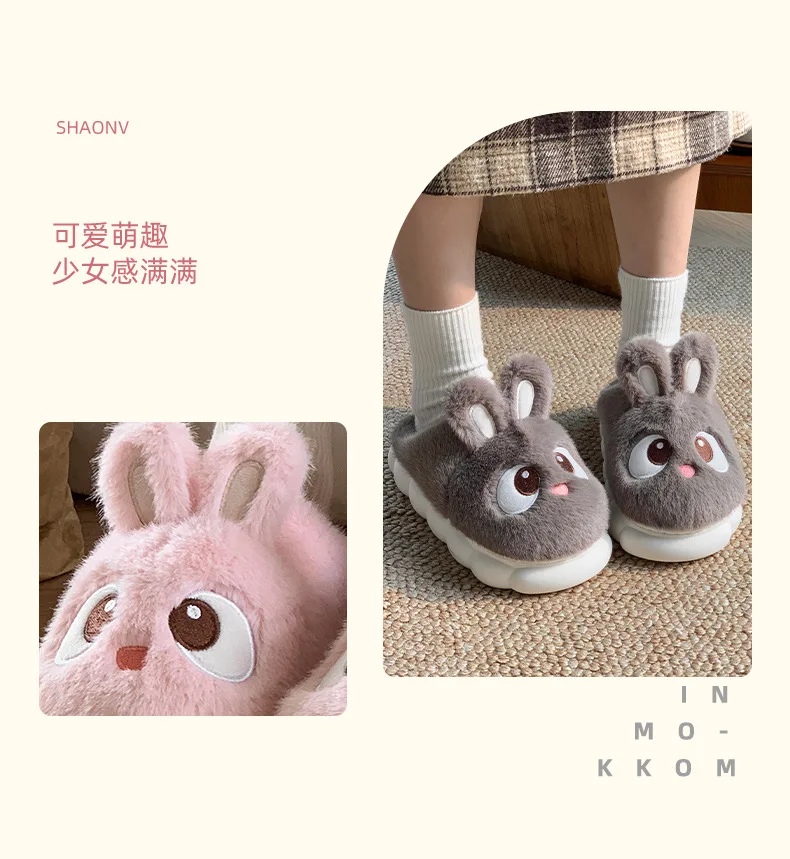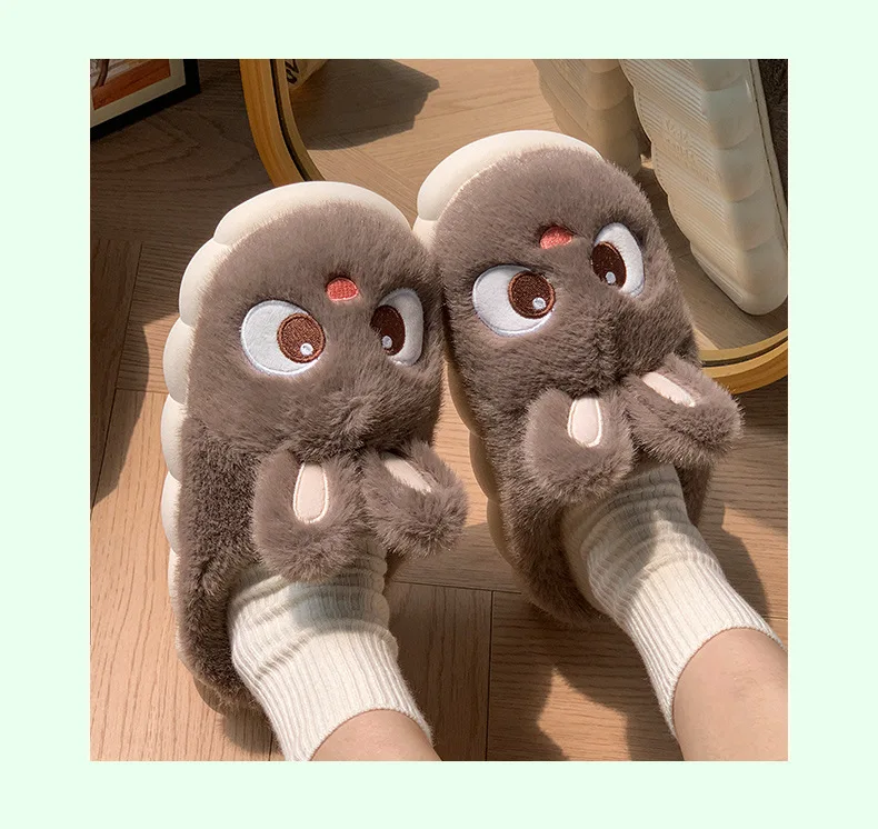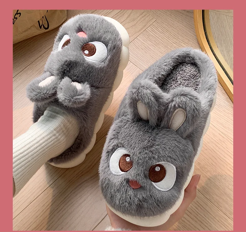 Rabbit Ear Furry Slides Winter Home Shoes