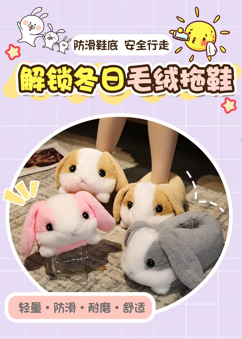 Winter Funny Rabbit Slippers Women